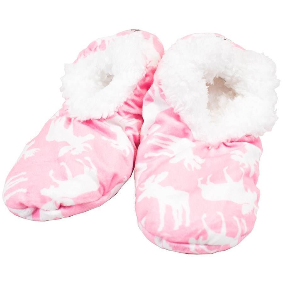 Classic Moose Pink Fuzzy Feet Slippers, Adult